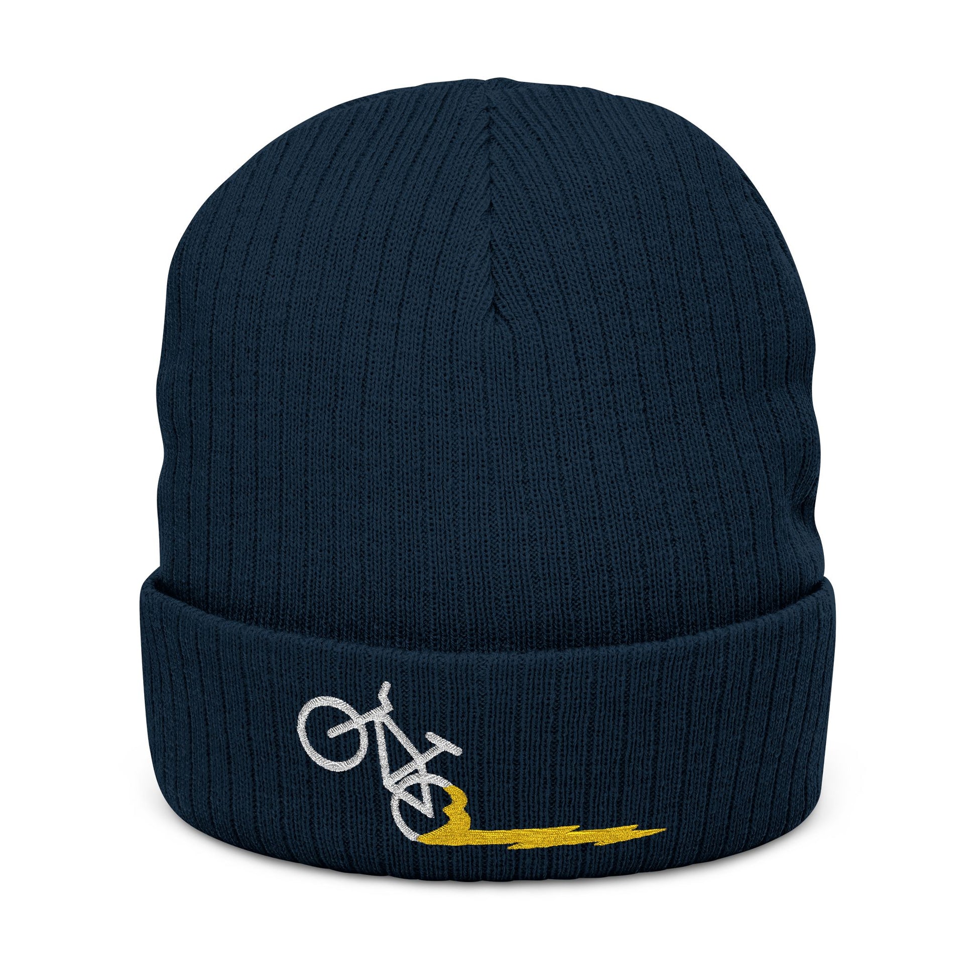 When you're not wearing a helmet and riding a bike, show them how burnt out you get with this ebroidered ribbed beanie.
